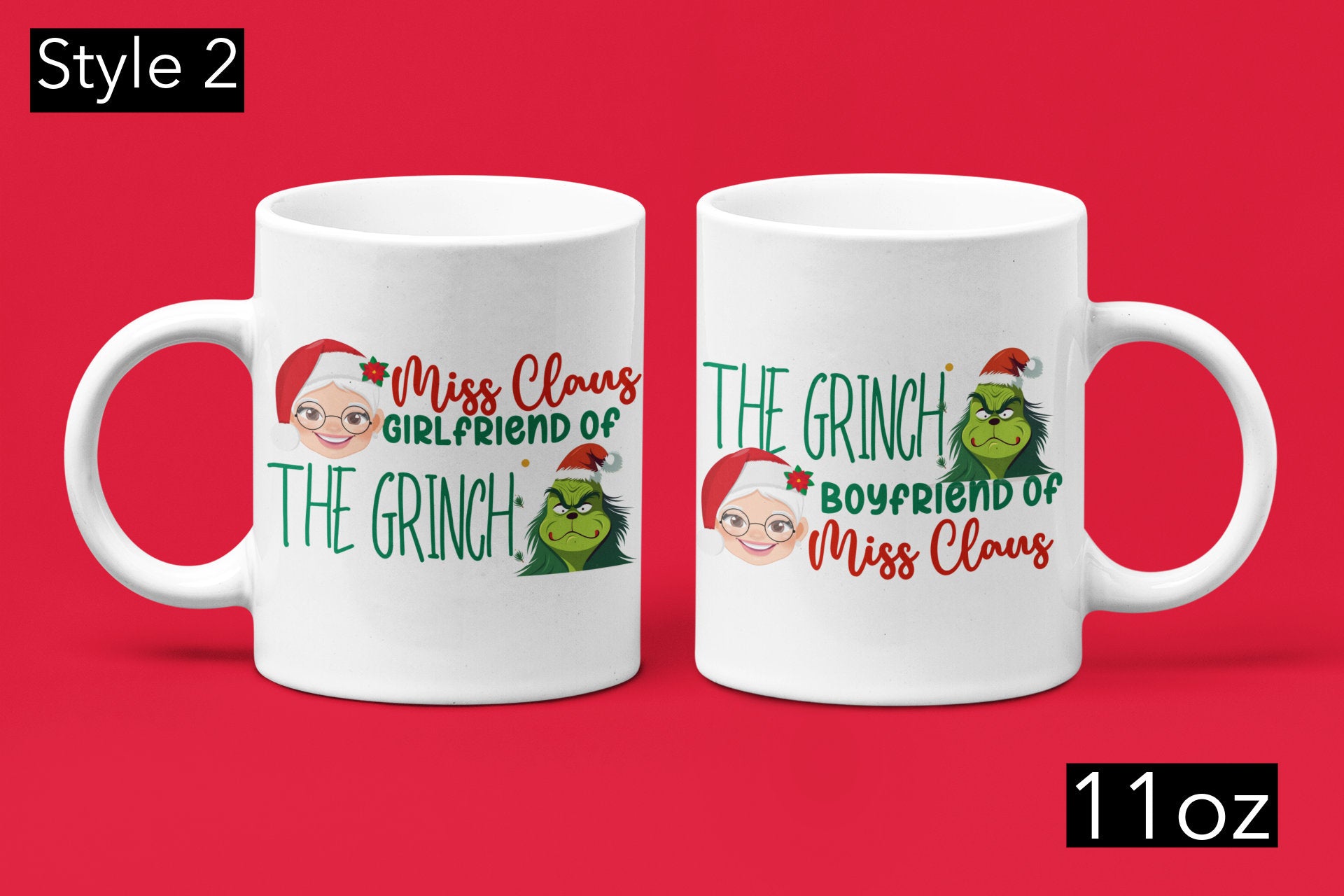 2 Piece Funny Christmas couple matching Mugs, Mr and Mrs Claus but girlfriend and boyfriend of the Grinch Trendy Xmas fiancé Grinchmas gift