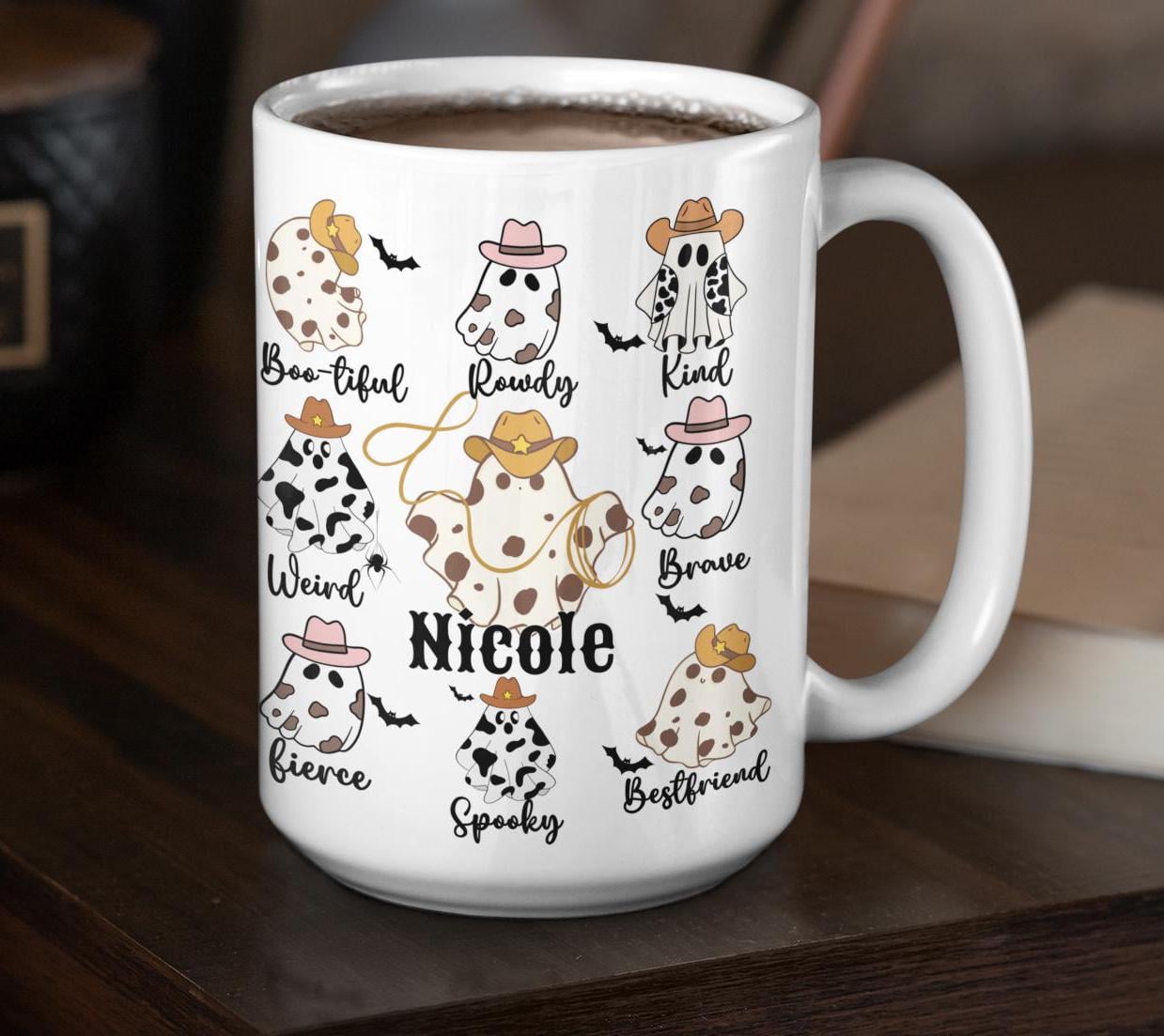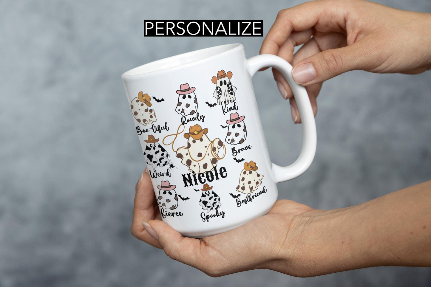 Custom Cowgirl Halloween Mug Gift for Men Women Personalize Cowboy Ghost Mug Spooky Birthday Halloween Coffee mug for Mom friend Dad Country