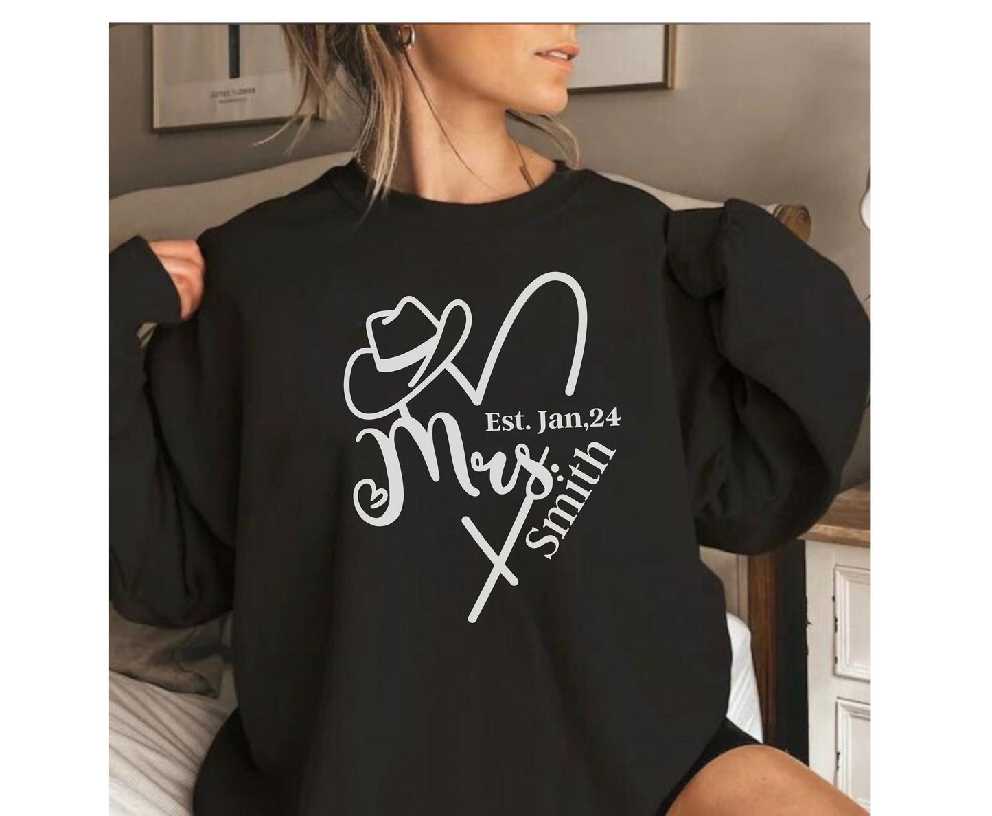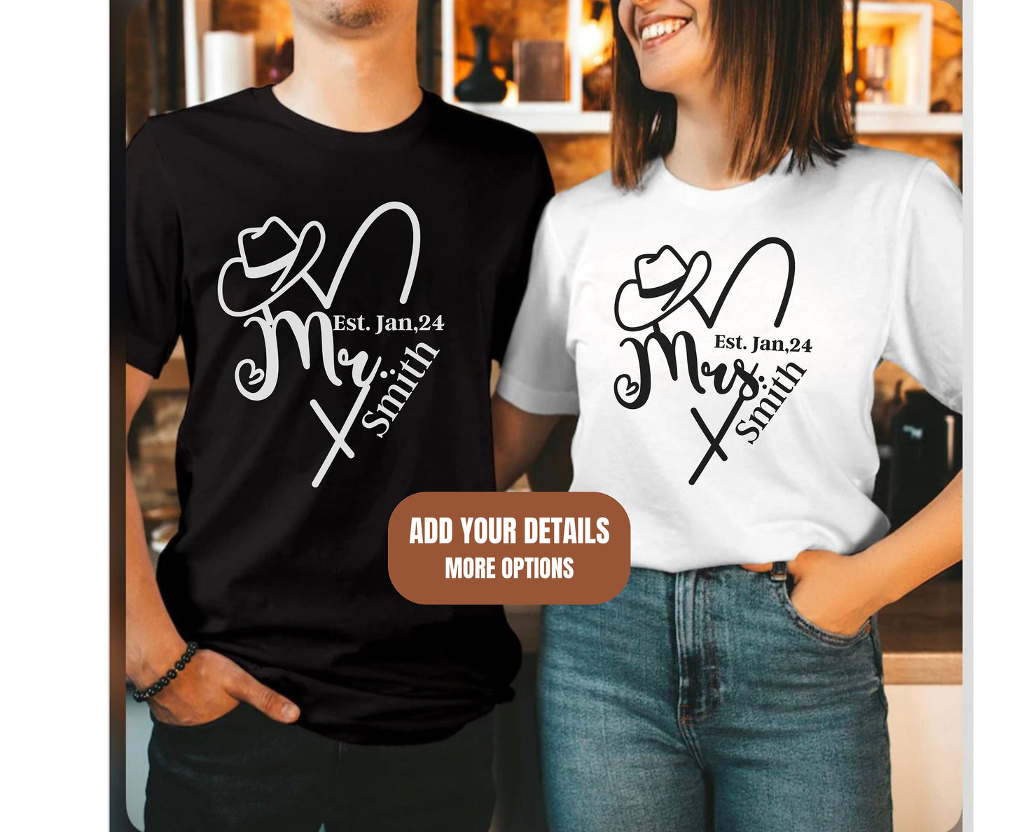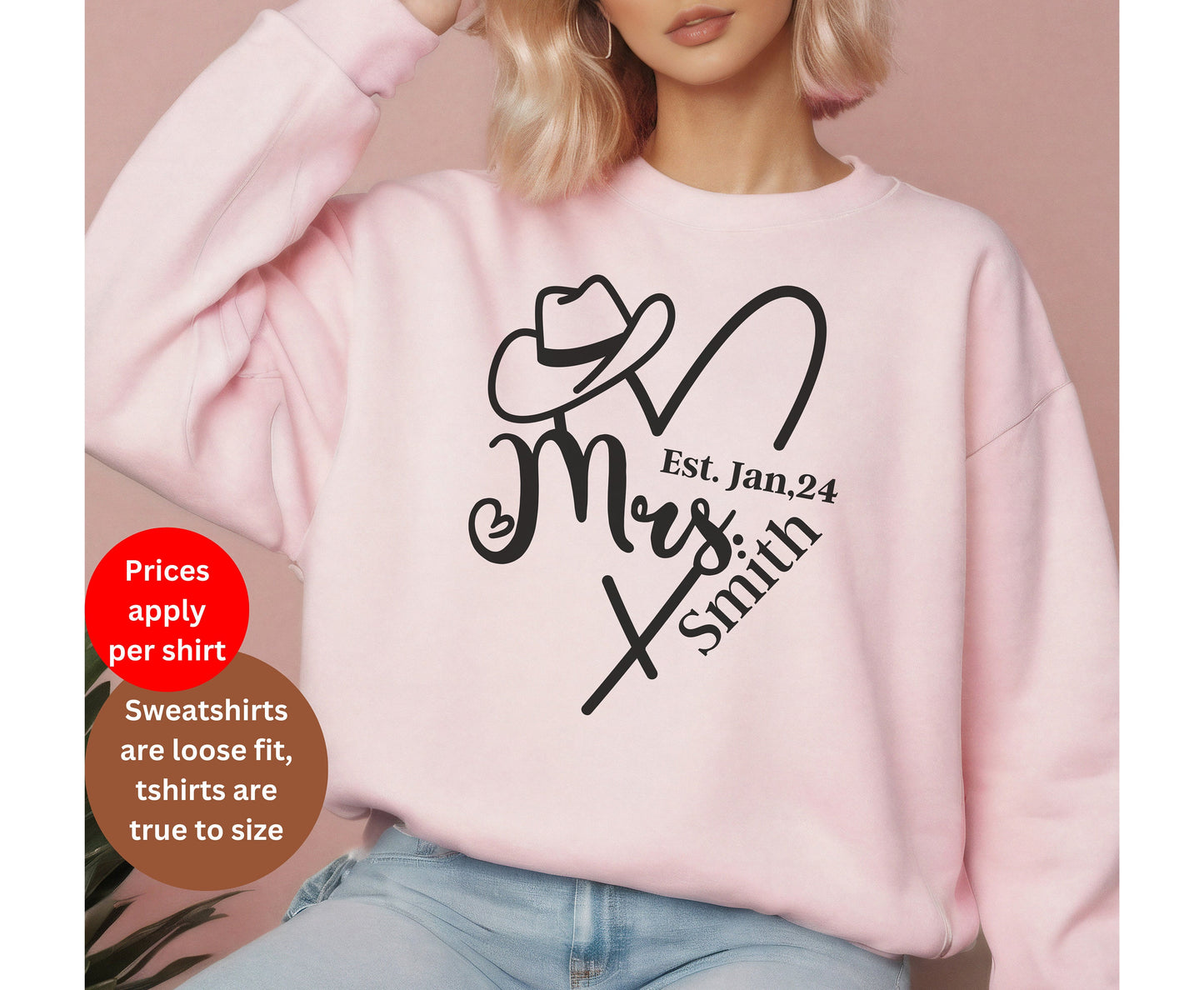 Benutzerdefinierte Herr und Frau paar Shirts Western Themen Hochzeit T Shirt für Cowgirl Braut und Cowboy Bräutigam Paar passende Rodeo Flitterwochen Sweatshirt