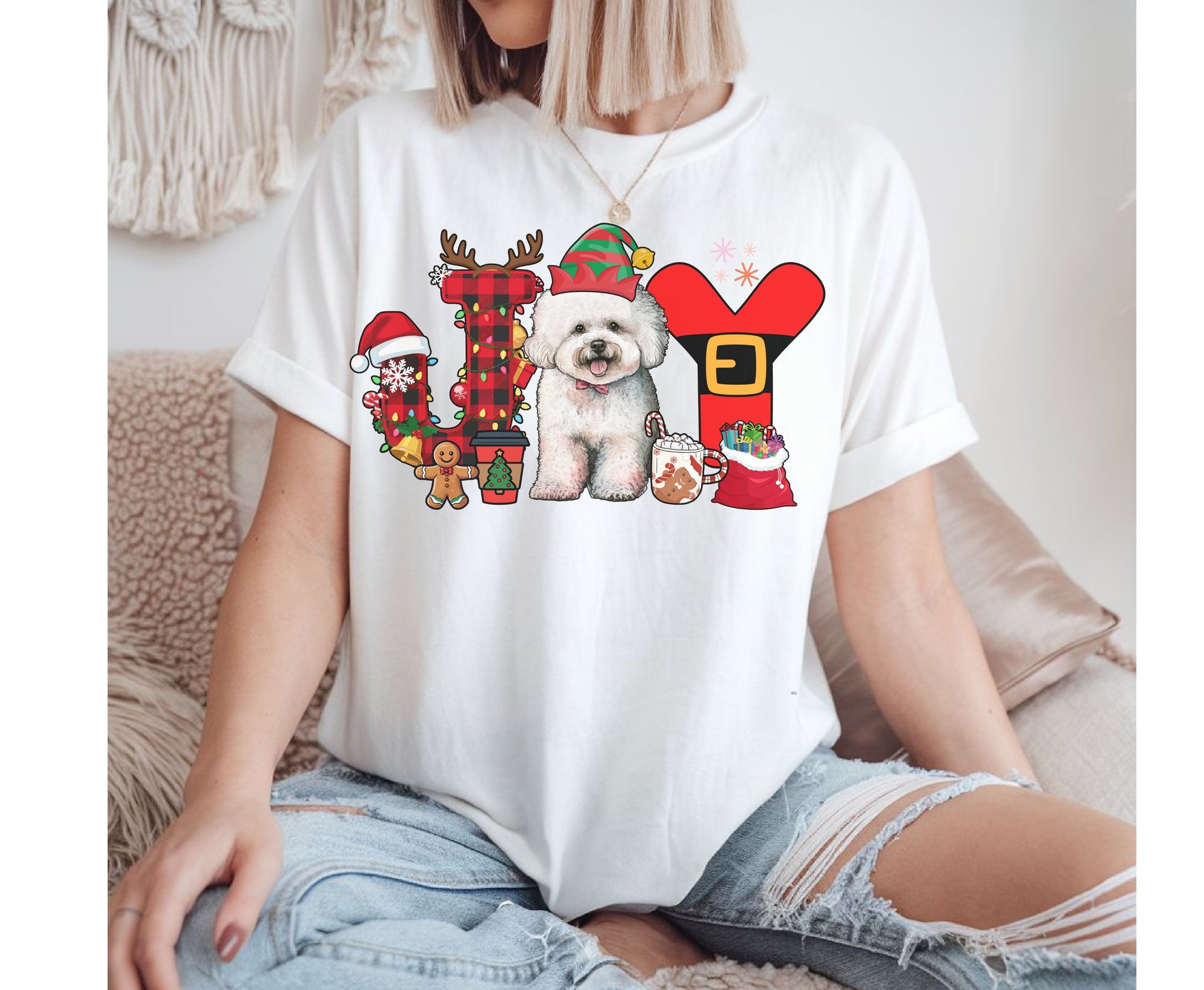 Bichon frise Dog Breed Christmas Tee Jumper - Bichon frise Joy Dog mom dad Xmas Unisex Shirts