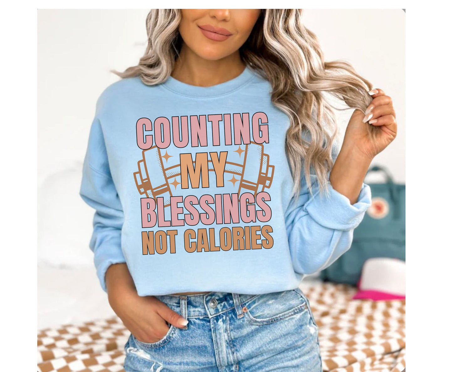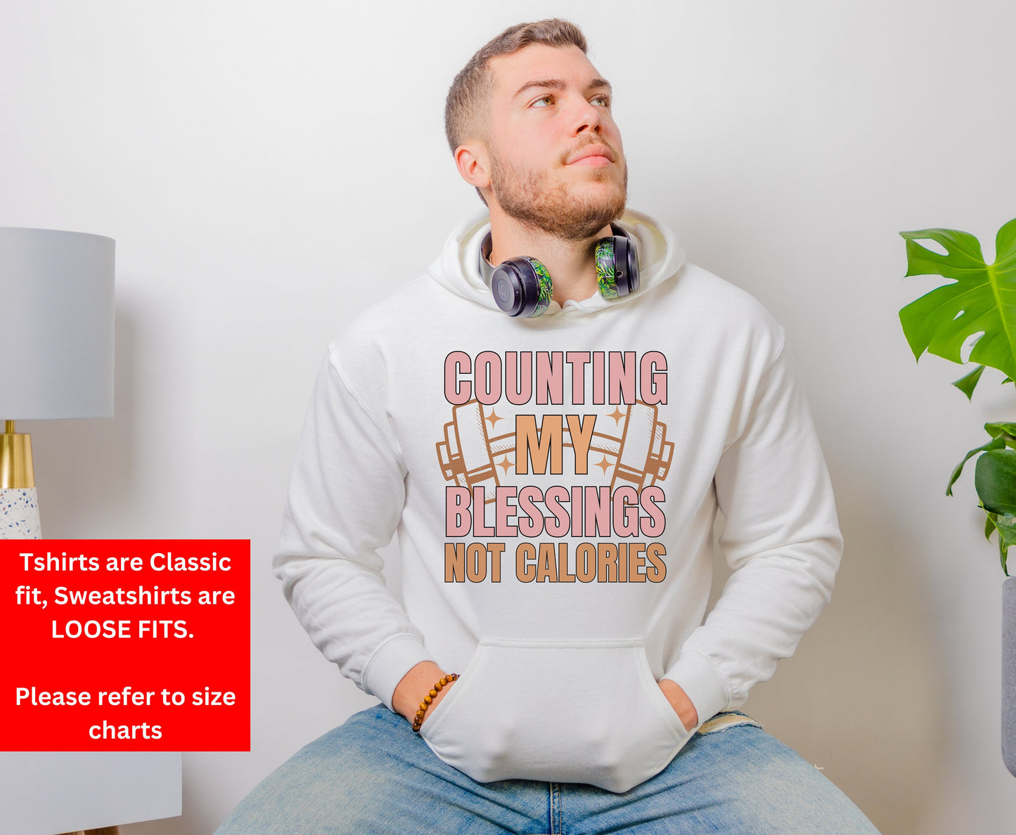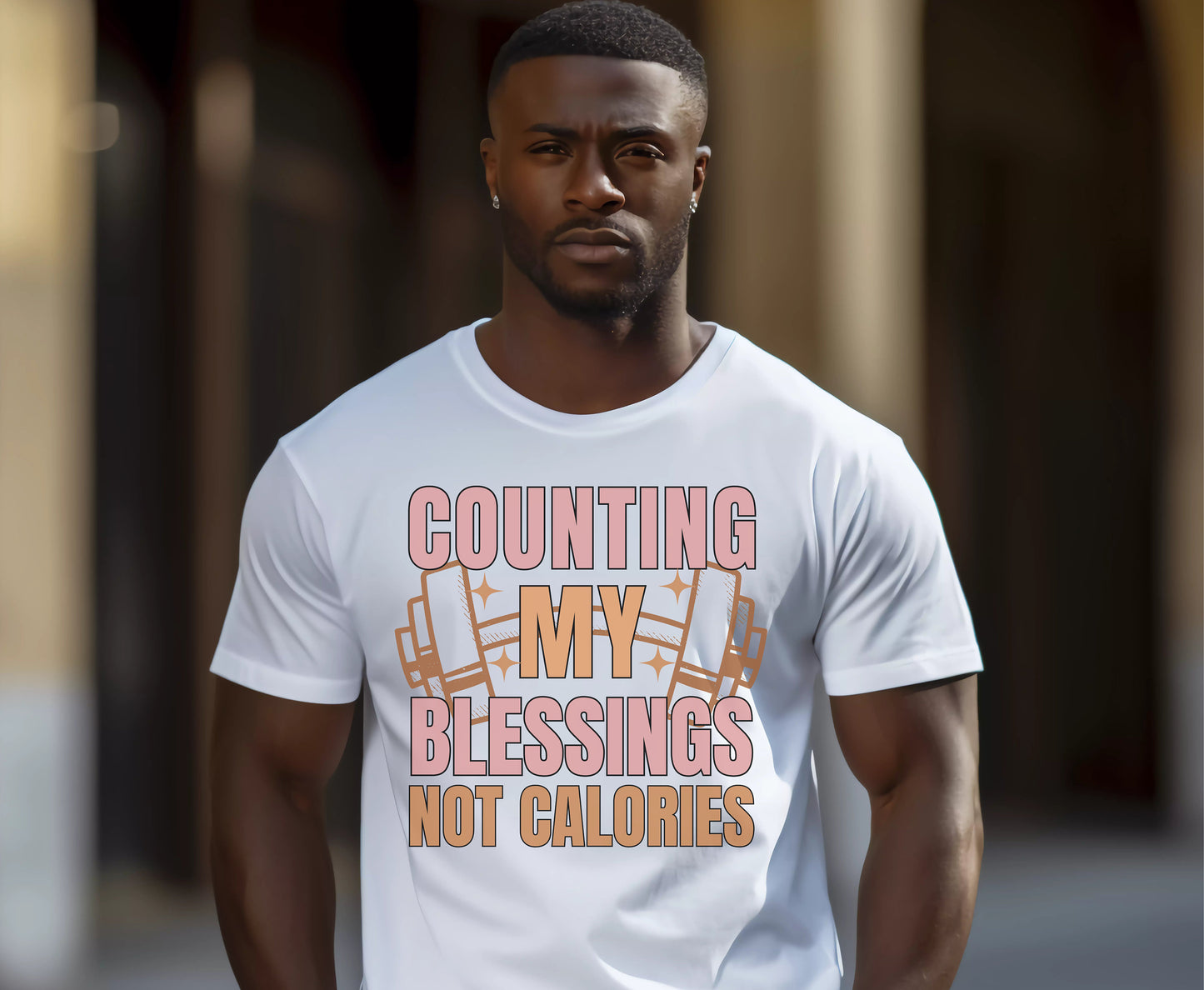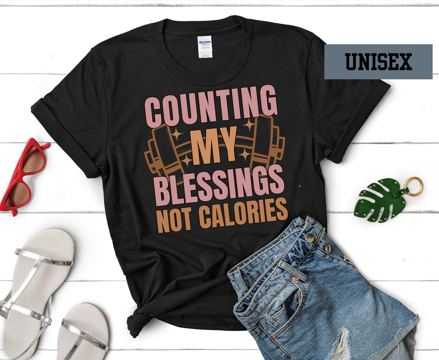 Lustiges Workout-T-Shirt „Counting My Blessings Not Calories“ Fitness-Geschenk für Gewichtheber Oversize Work Out Tee Pump Cover Männer Frauen Gym Shirts