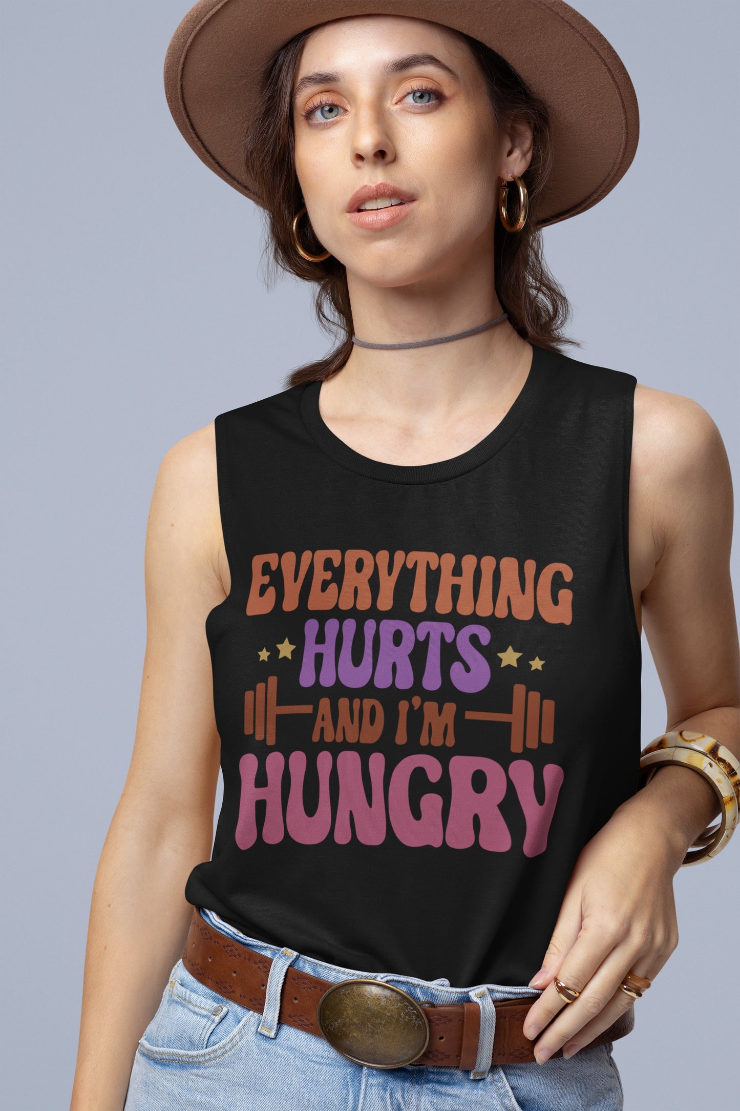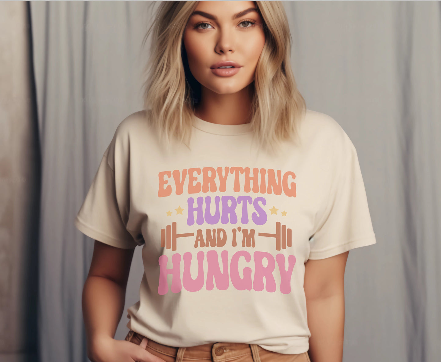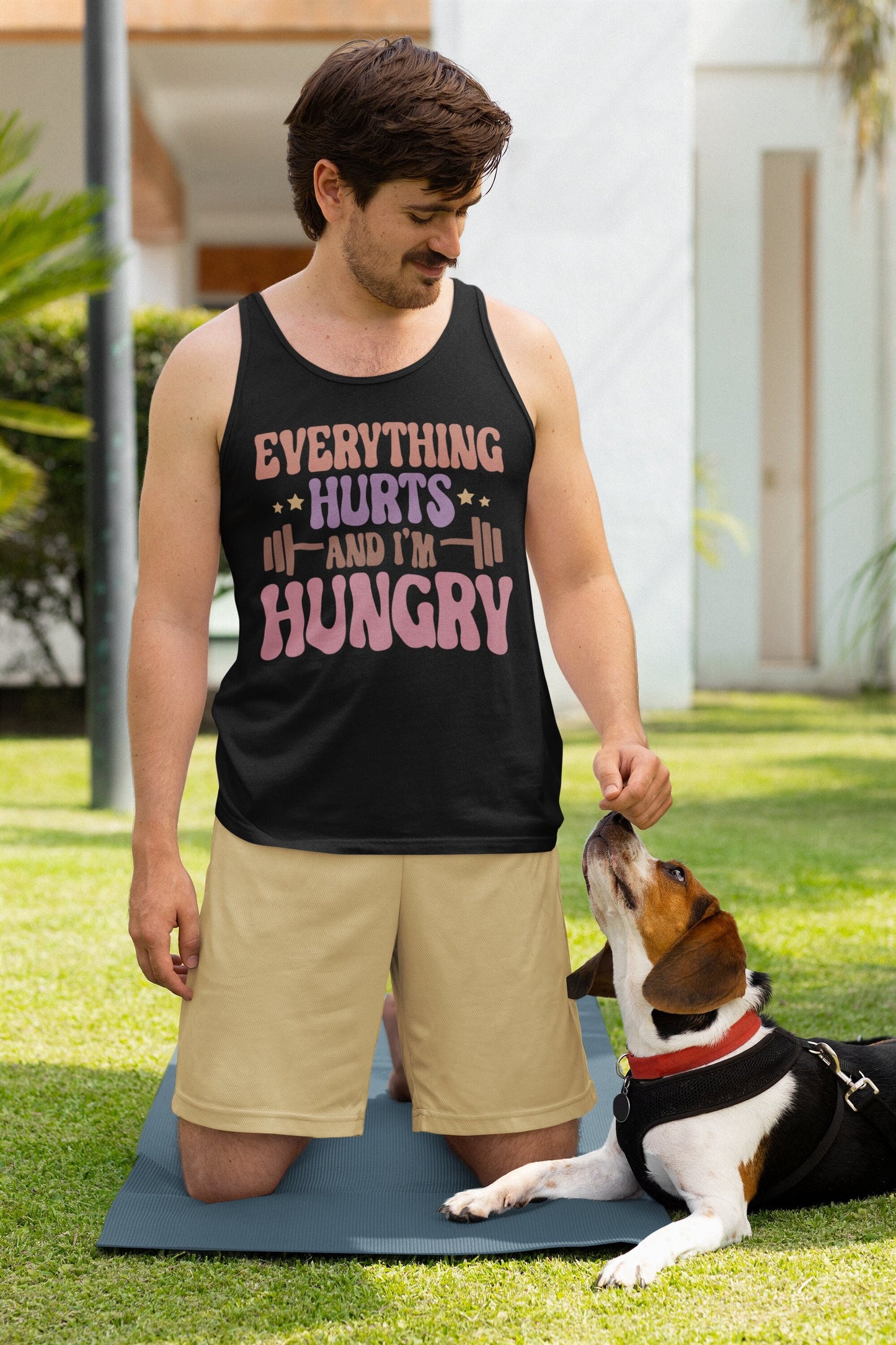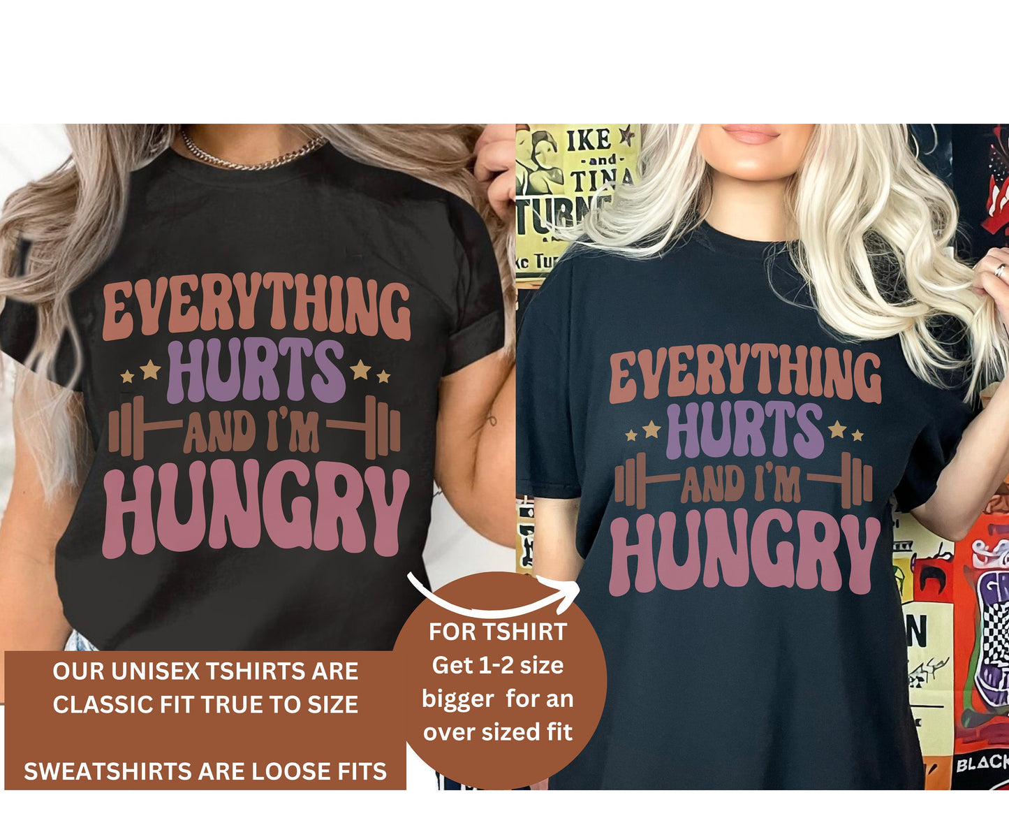 Lustiges Workout T-Shirt, Everything Hurts And I'm Hungry Shirt, Geschenk für Gewichtheber, Oversized Work Out Tee, Pump Cover, Männer Frauen Gym Shirt