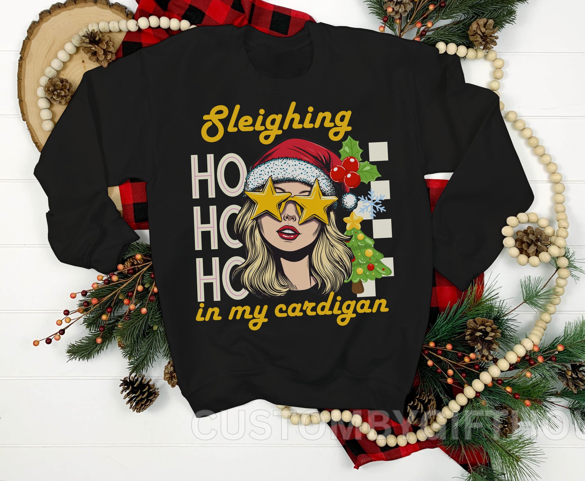 Sleighing in My Cardigan Unisex Christmas Tee Sweatshirt