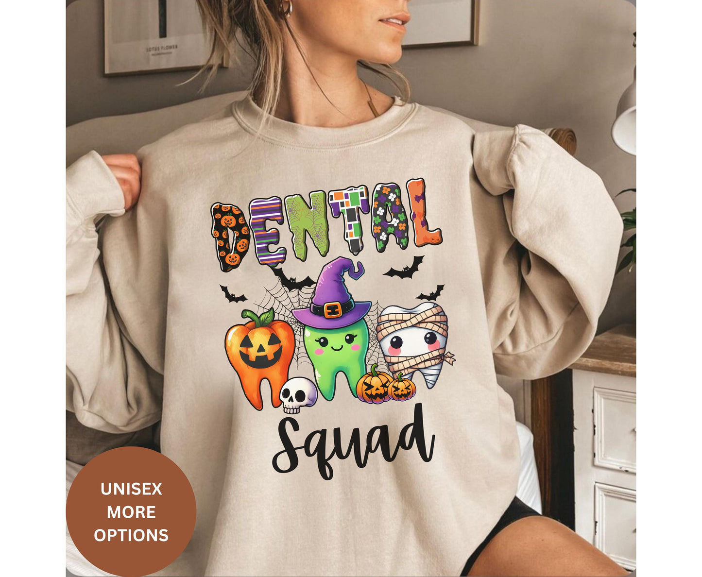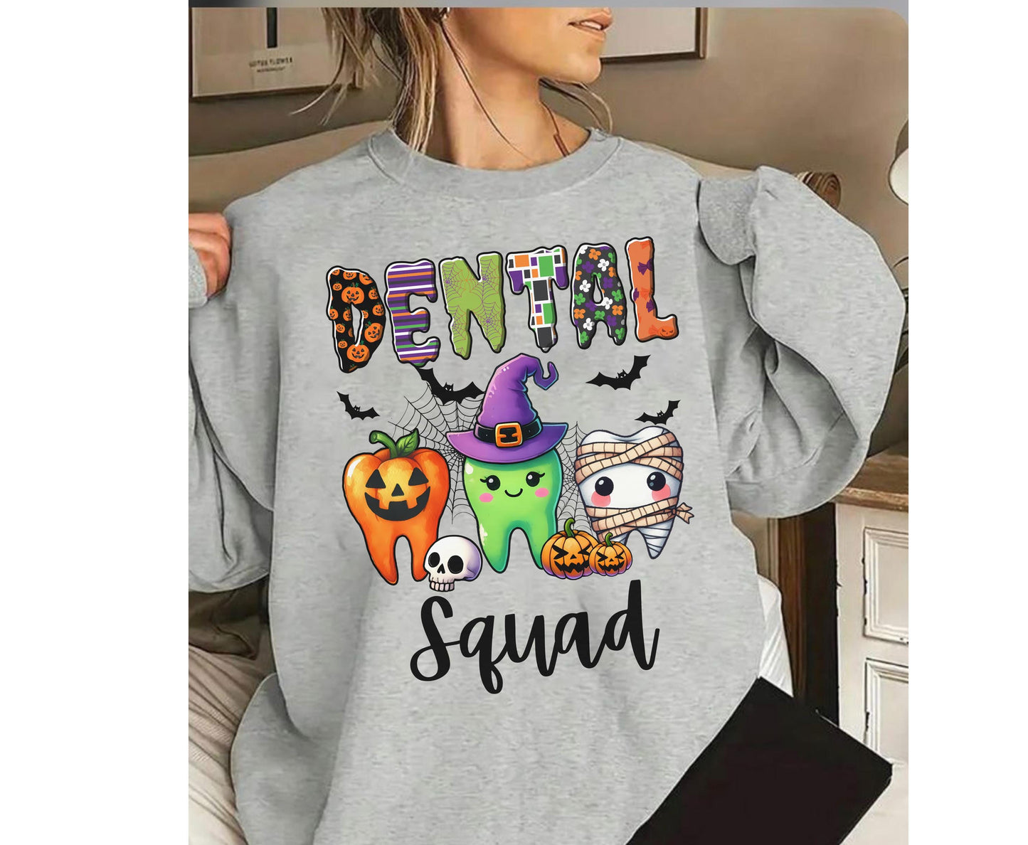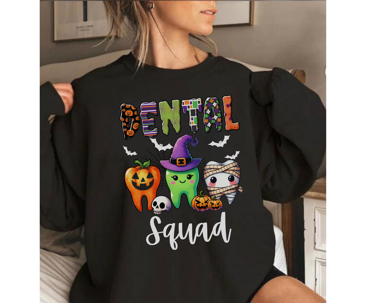 Spooky Halloween Dental Squad T-Shirt Sweatshirt and Hoodie - Dentist Nurse Halloween Party Gifts for Men and Women