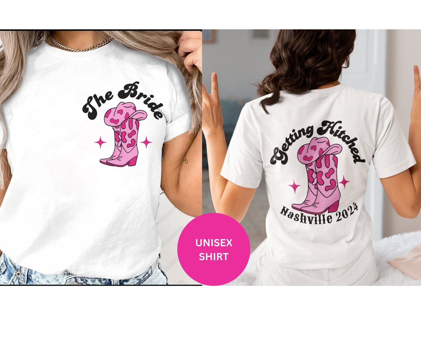 Trendy Western Themen Hen Party T Shirt Getting Hitched Cowgirl Country Bachelorette Shirts Geschenk für Cowboy Team Braut Brautjungfer Crew Shirt