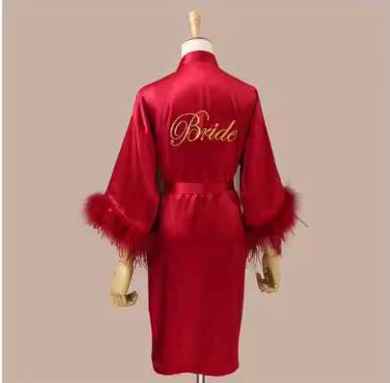 Women FEATHER Bride Bridesmaid Wedding Robe Satin Kimono Bathrobe Gown Nightwear Embroidery Letter Nightgown Lingerie, Does not come with an underswear SHOP NOW!