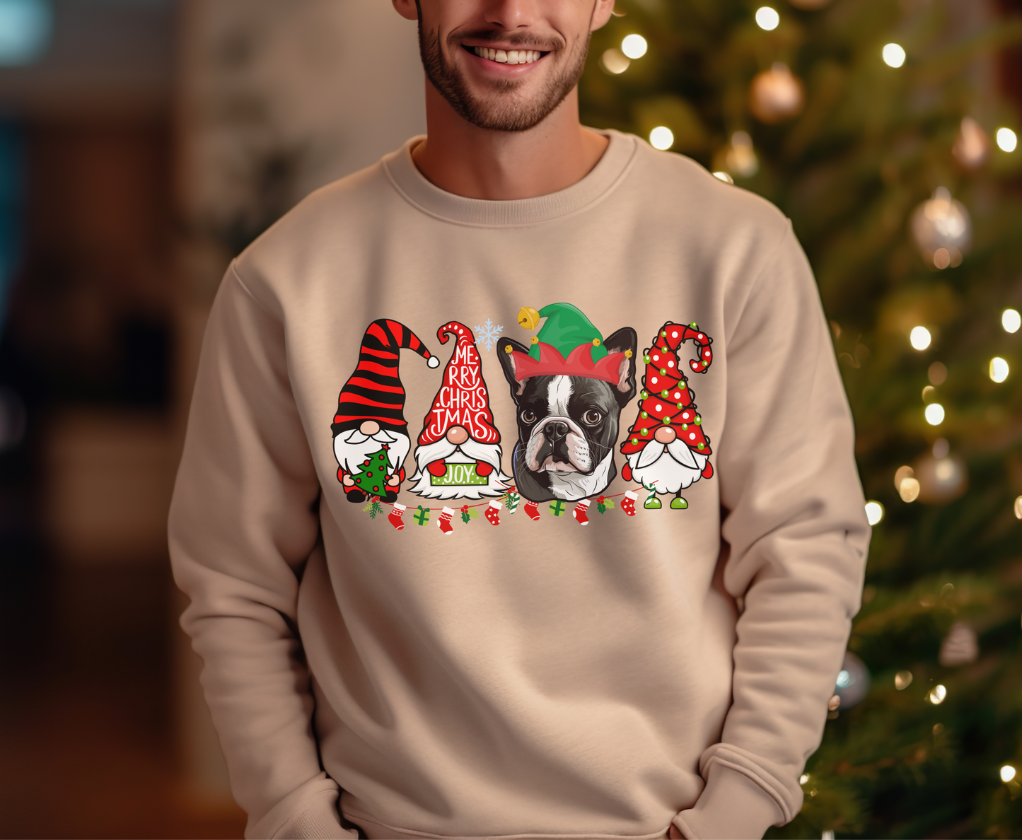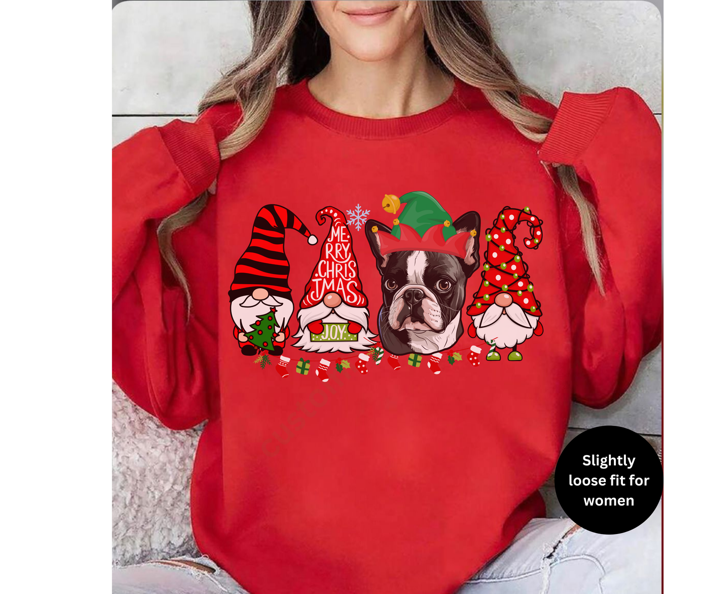Boston Terrier Winter Sweatshirt, Christmas Elf Gnome Lover Shirt Boston Terrier Mom-Dad Hoodie Sweater gifts for Dog owner dog lover tshirt