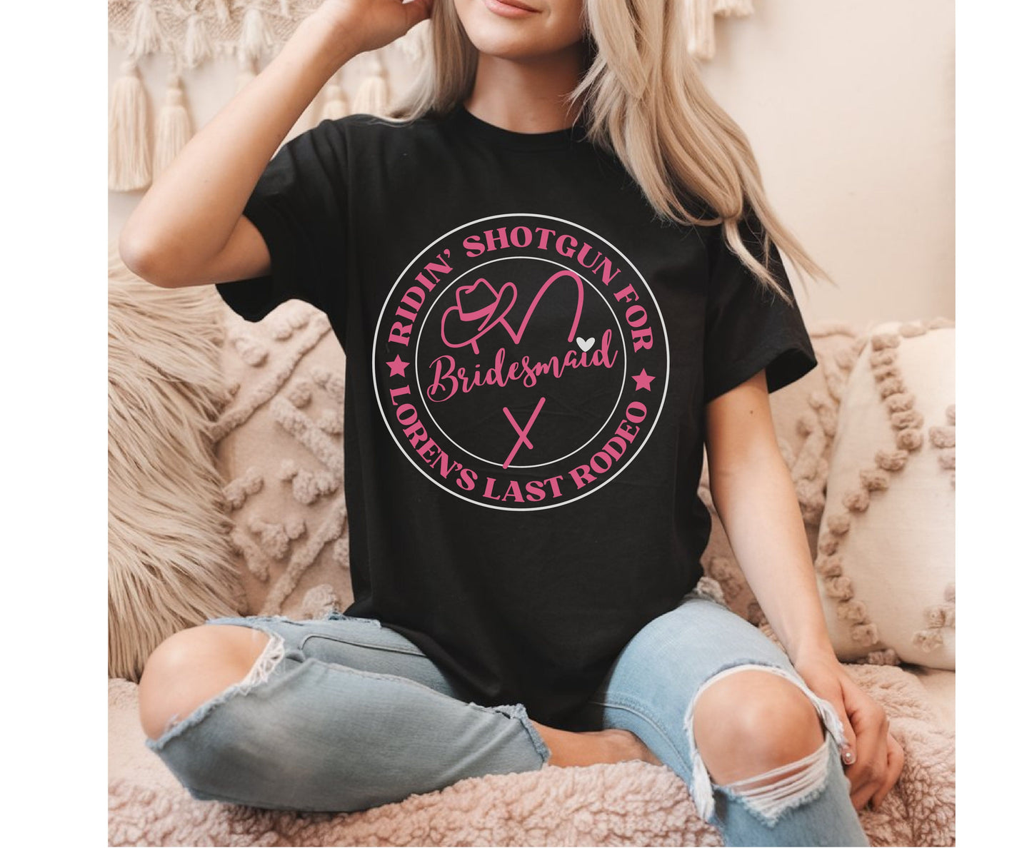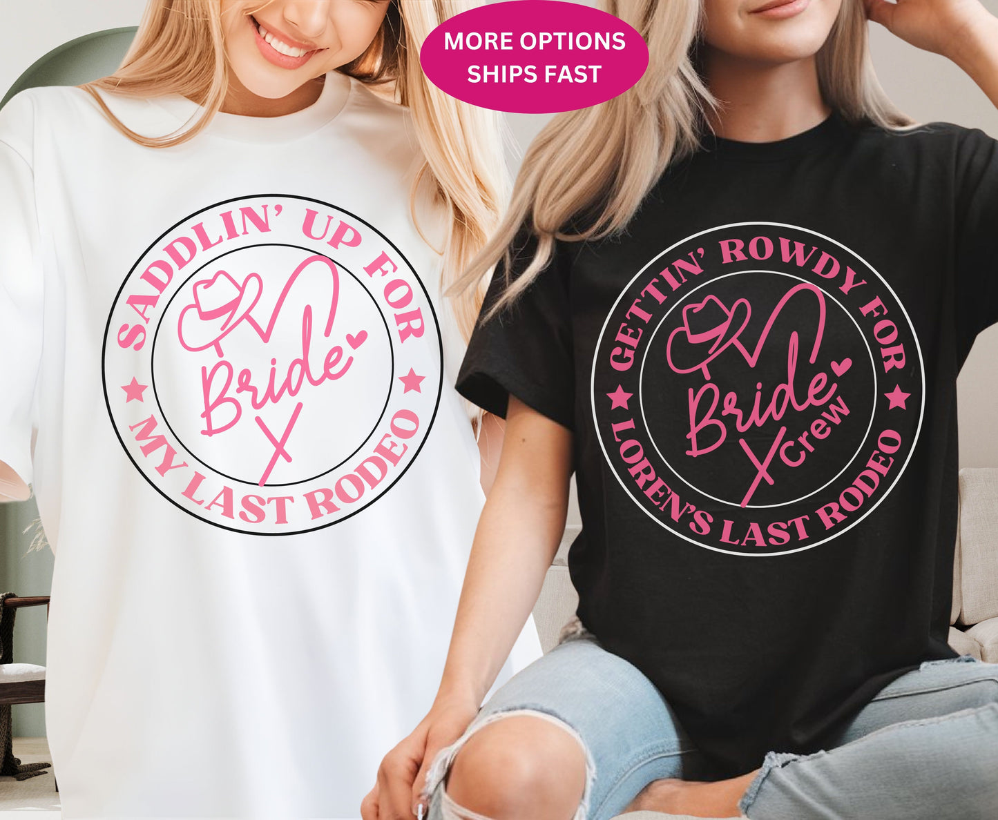 Yeehaw, ladies! Saddle up and wrangle your way into the wildest bachelorette bash this side of the Mississippi! Don your cowgirl hats and put on your boots, because we're celebrating Bride's last rodeo before tying the knot! Get ready to ride, rope, and raise a little hell in style with our 'It's My Last Rodeo' bachelorette shirts! Let's show this town how we round up the fun.