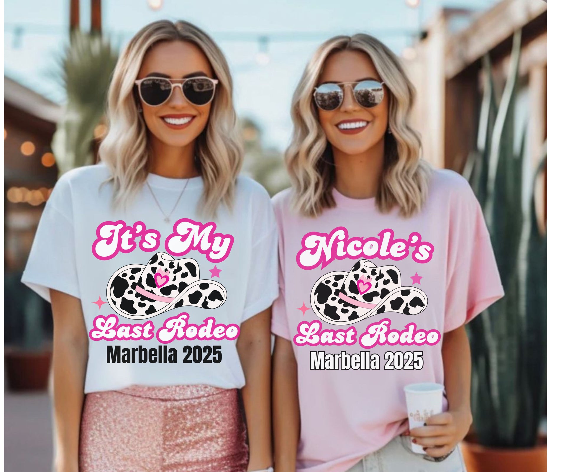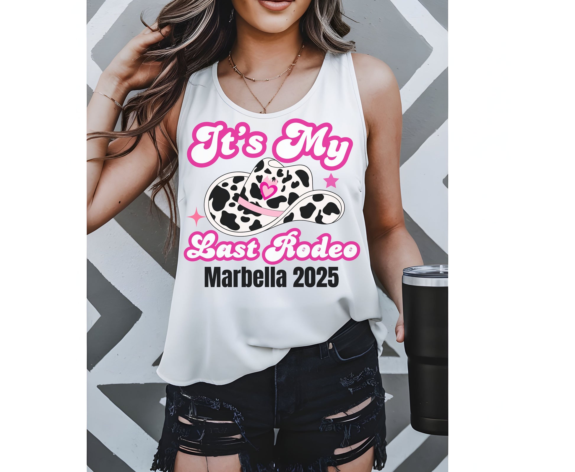 Yeehaw, ladies! Saddle up and wrangle your way into the wildest bachelorette bash this side of the Mississippi! Don your cowgirl hats and put on your boots, because we're celebrating Bride's last rodeo before tying the knot! Get ready to ride, rope, and raise a little hell in style with our 'It's My Last Rodeo' bachelorette shirts! Let's show this town how we round up the fun.