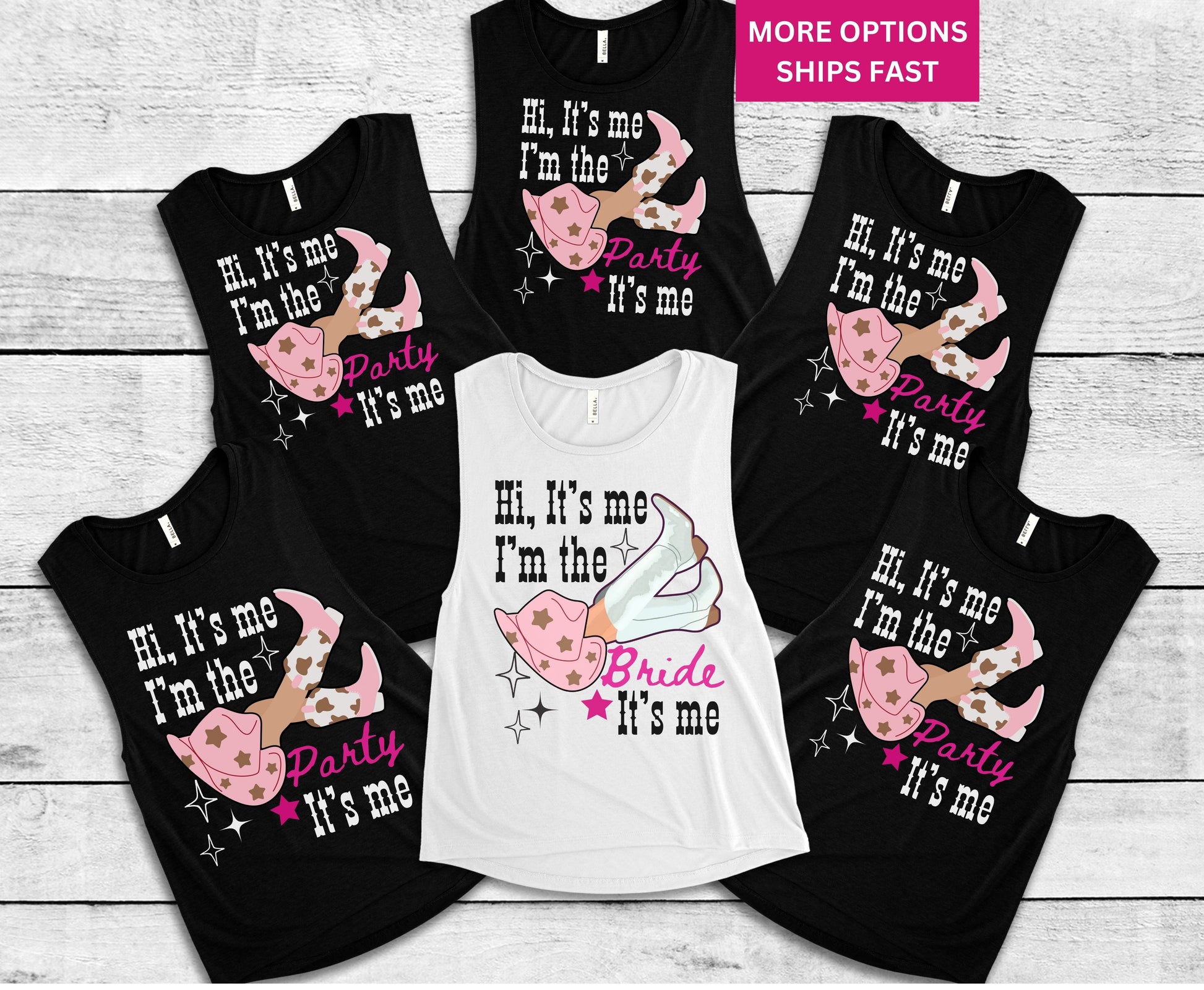 Yeehaw, ladies! Saddle up and wrangle your way into the wildest bachelorette bash this side of the Mississippi! Don your cowgirl hats and put on your boots, because we're celebrating Bride's last rodeo before tying the knot! Get ready to ride, rope, and raise a little hell in style with our It's me Hi, Bride Bridesmaid ShirtThis is a retro bachelorette custom Shirt for those swifties perfect for Bride bridesmaid for that fun Hen Party. Ships fast, Fully customizable