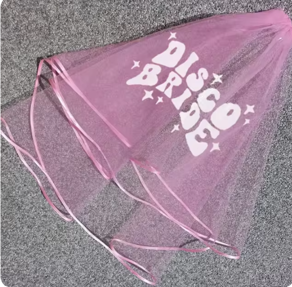 Last Disco bride pink veil Retro Bach weekend Groovy Bachelorette hen Party Wedding bridal shower bride to be decoration gift Delivers within 5-8 Working days, Ships to the UK, US and Canada