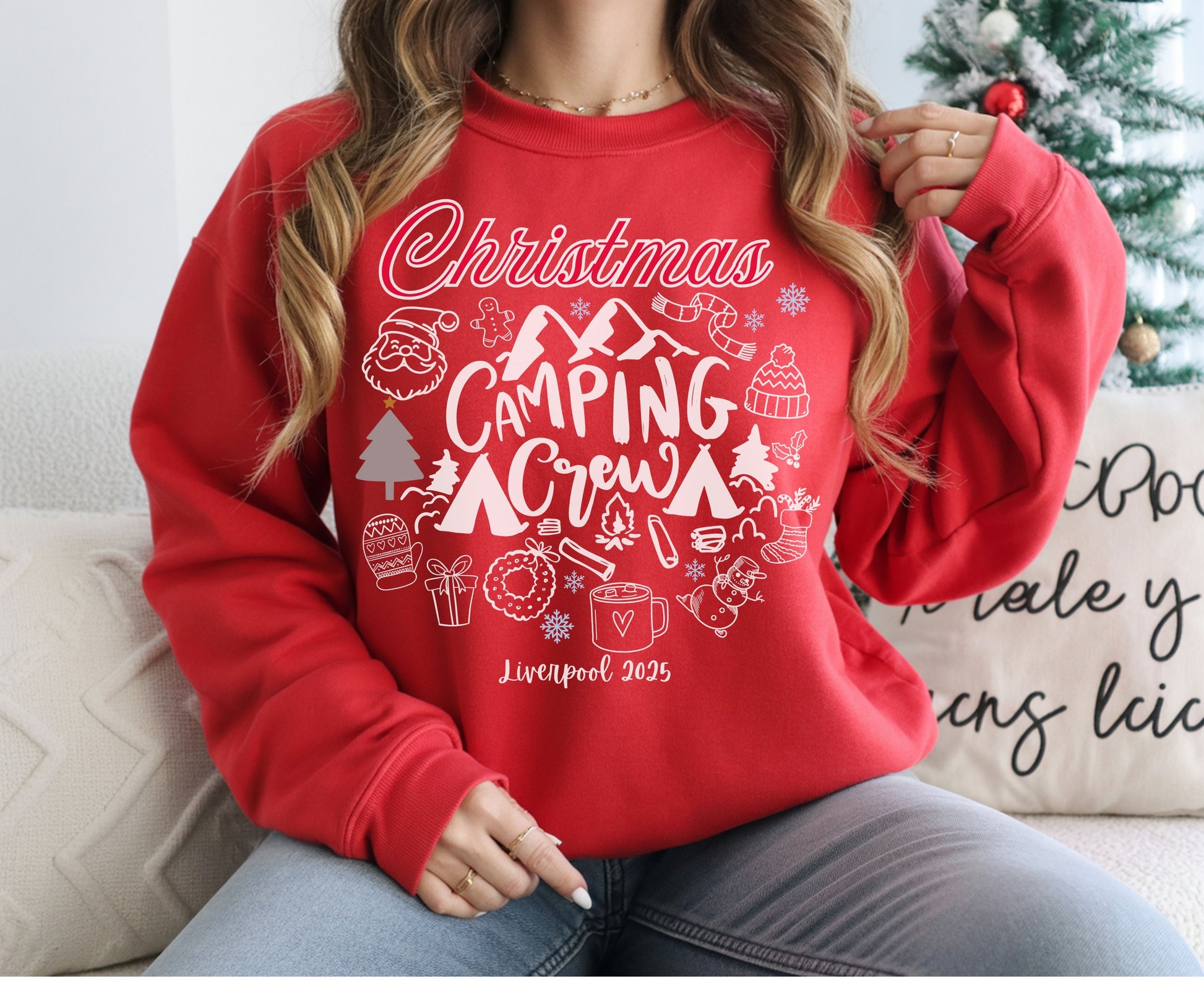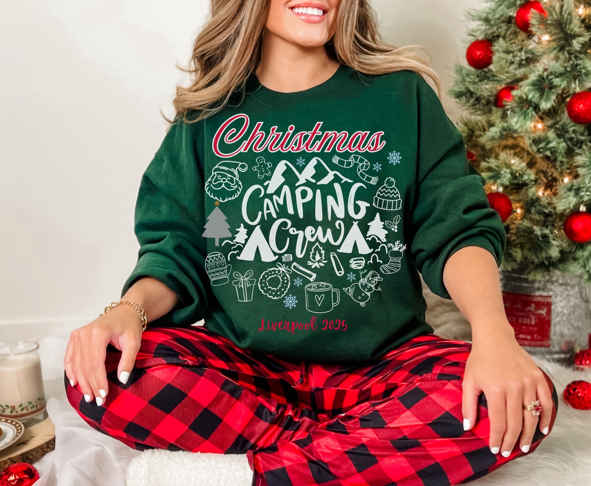 Personalized Christmas Camping Crew Tee Sweatshirt - Unisex Custom Xmas Camp Jumpers