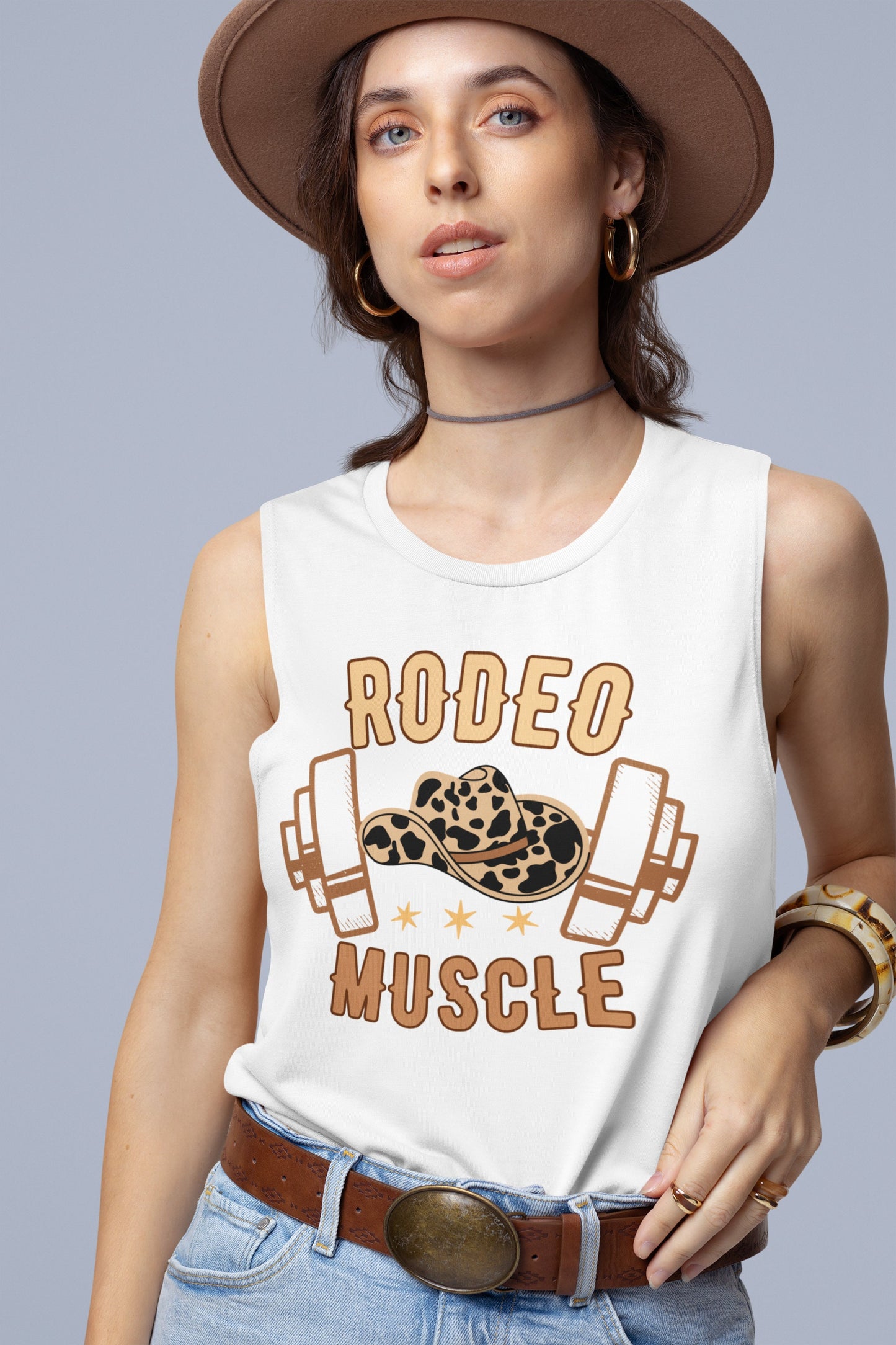 Gym T-Shirt - Rodeo Muscle Cowboy Theme Country Workout Gear for Men and Women Gym Gift for Weightlifters Oversized Tanks