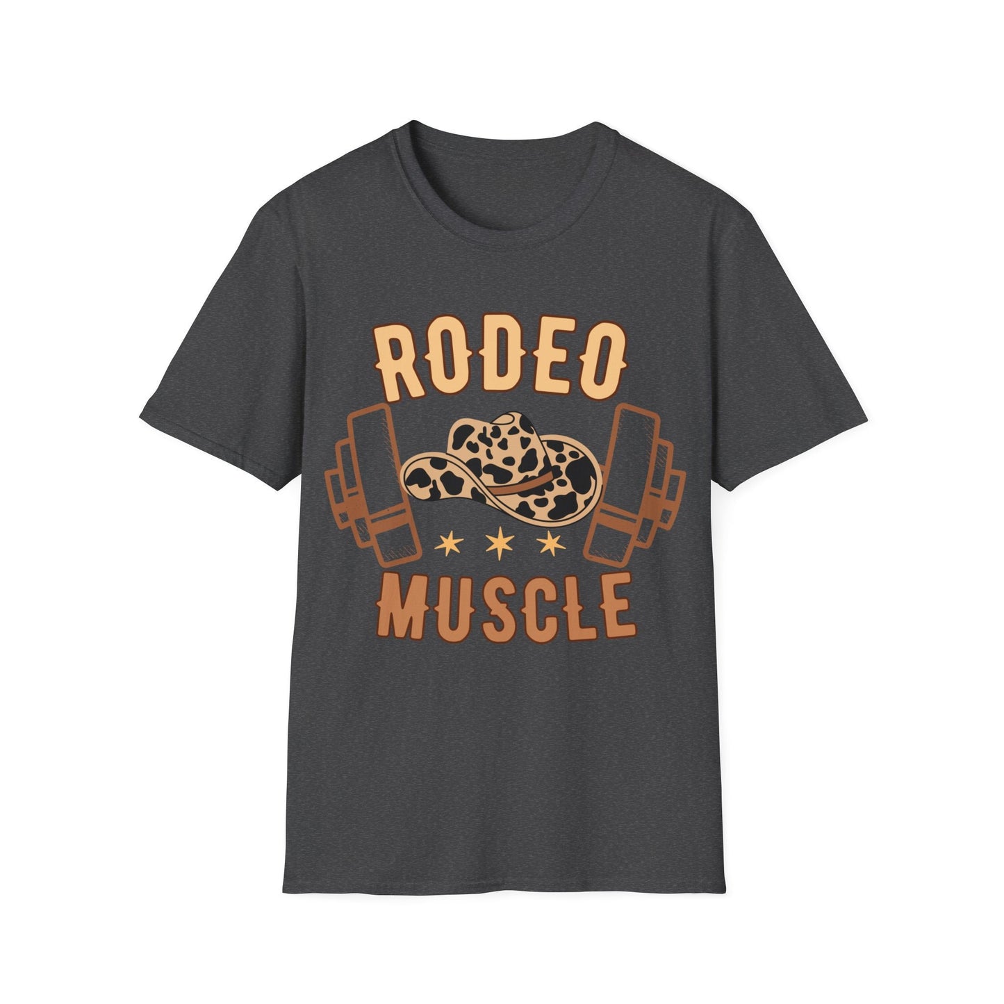 Unleash Your Inner Cowboy: Saddle Up for Rodeo Muscle! with our unisex soft-style t-shirt puts a new spin on casual comfort. Made from very soft materials, this tee is 100% cotton for solid colors. Heather colors and sports grey include polyester