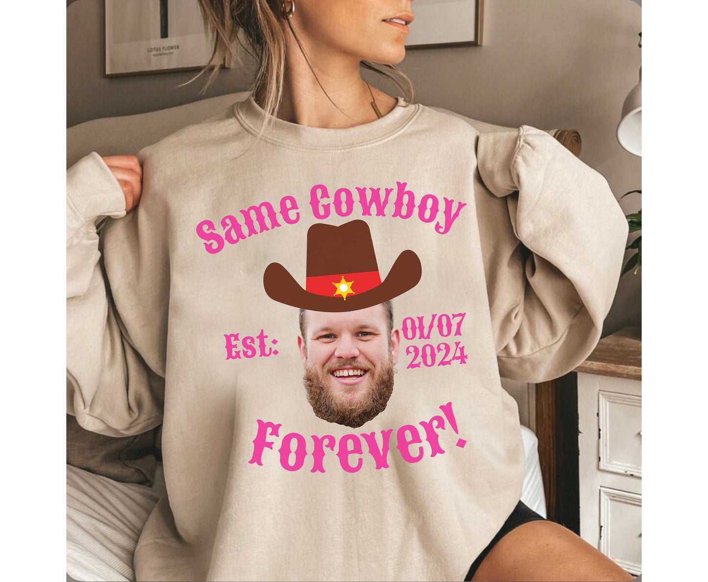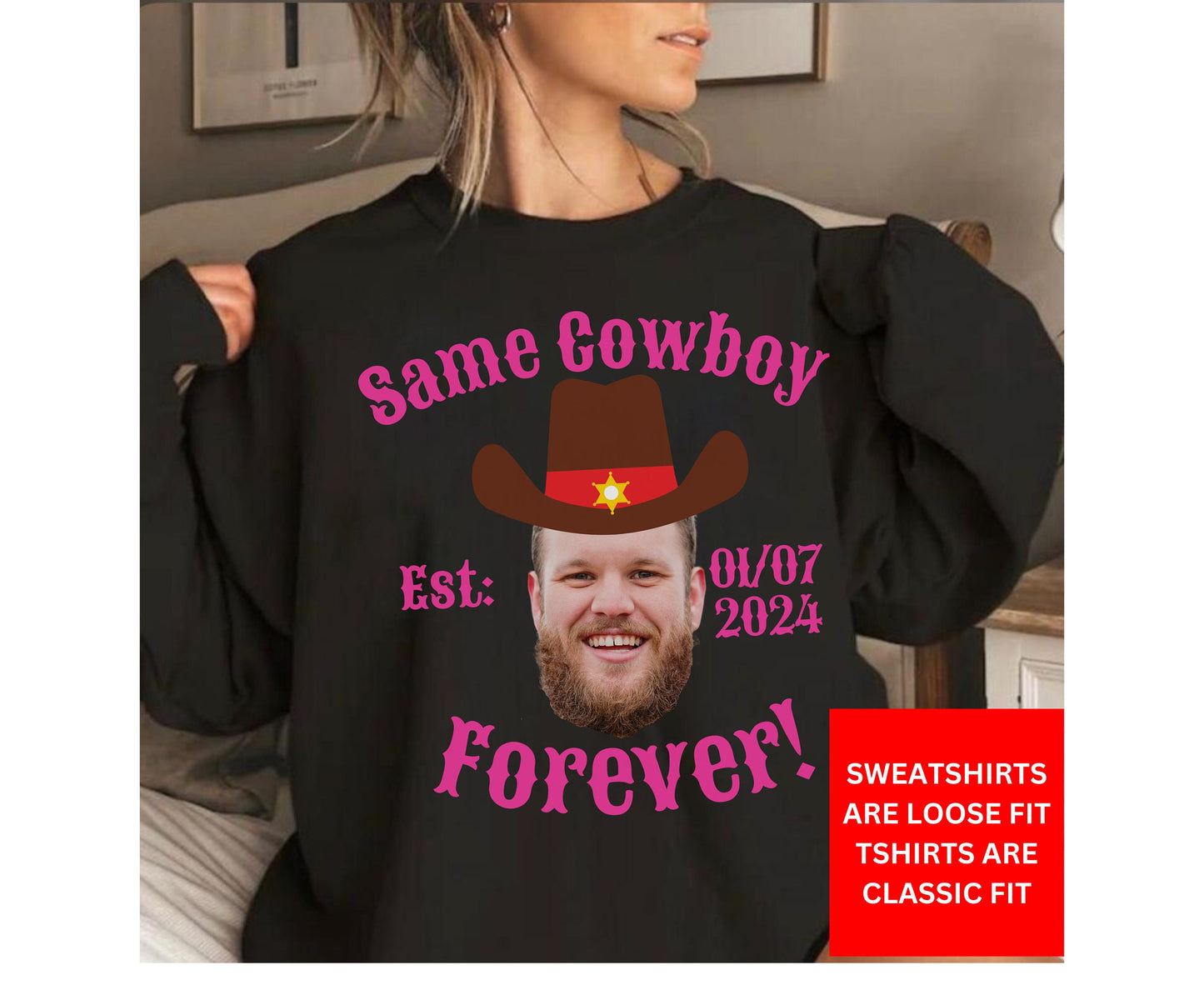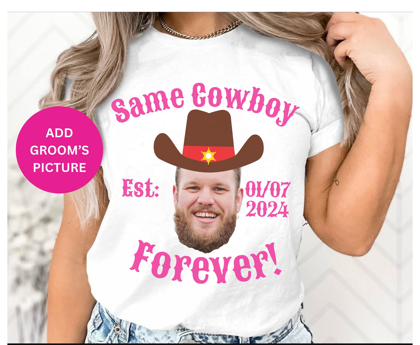 Same Cowboy Forever Hen Party Shirt ADD PHOTO Western Themed Cowgirl Bachelorette Shirt Cowgirl Hen Do Tee Shirt Country Bridal Party Jumper