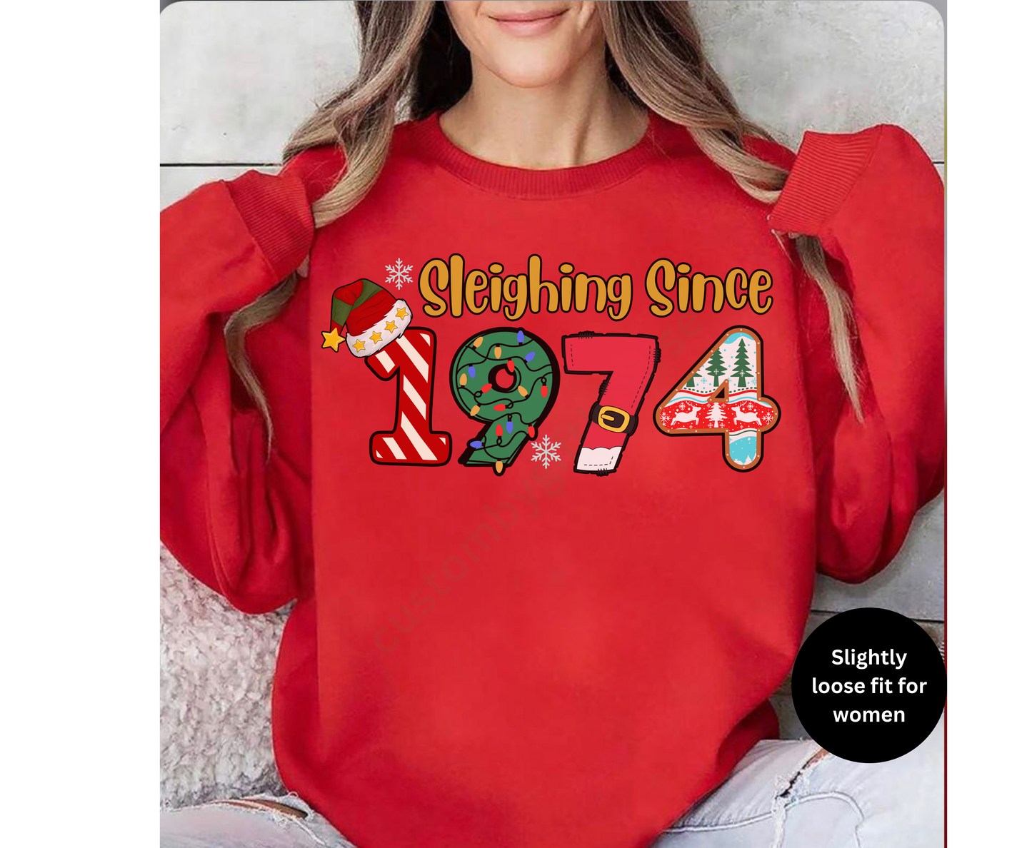 Sleighing since 1974 Festive Christmas Shirt for Men Women 50th Birthday Gifts for Her 50th Birthday 1974 Christmas Tees Sweatshirt Hoodie